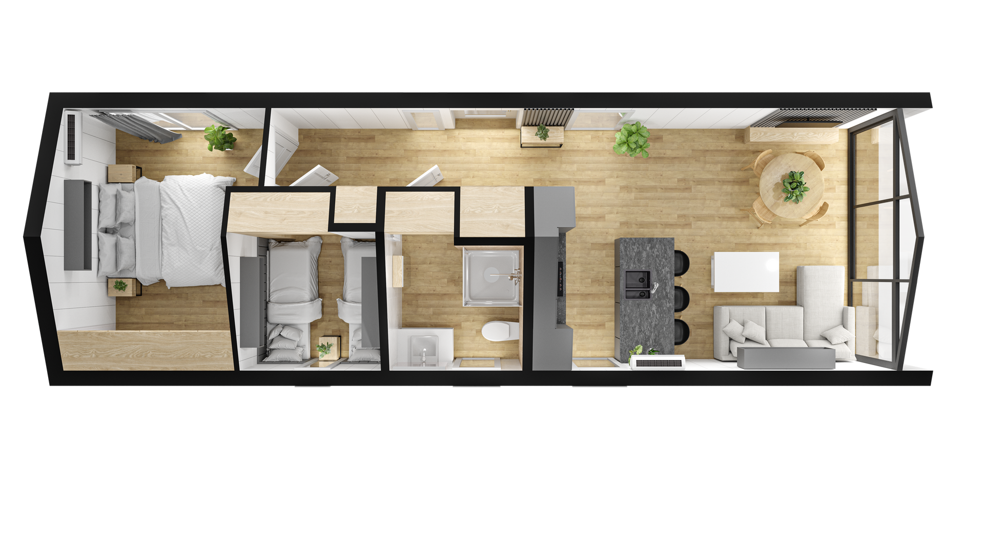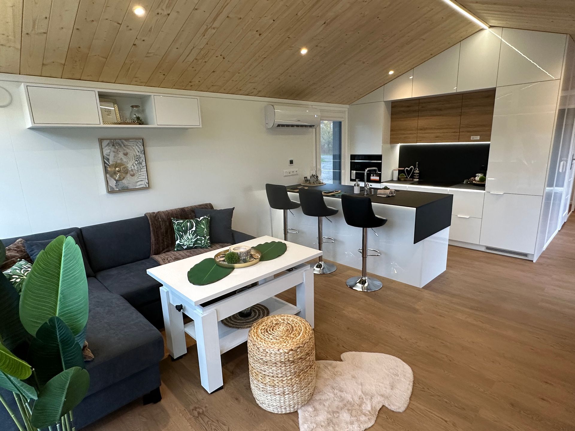 Unser Premium BOND DIAMOND+PLUS HOME mit bis zu 6 Schlafplätzen wurde entwickelt, um das Leben auf höchstem Niveau mit neuesten Design-Trends auf 49 m² (Aussenabmessungen 4,5 x13,5 , verbaute Fläche 60,75 m²) genießen zu können.