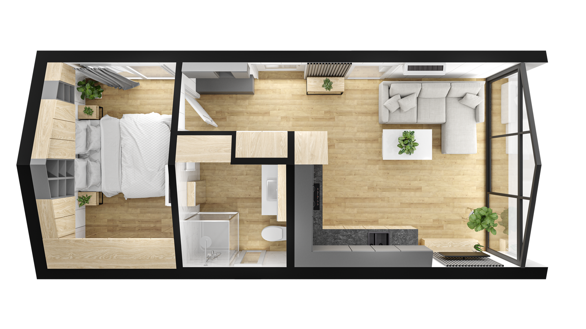 Unser Premium BOND DIAMOND-XS DELUXE HOME mit bis zu 4 Schlafplätze wurde als kleinere Lösung für Liebhaber von Gartensiedlungsgebieten und Kleingärten entwickelt. Ab jetzt können Sie Ihr Leben auf höchstem Niveau mit neuesten Design-Trends im kompakteren Rahmen mit serienmäßiger Interior DELUXE-Ausstattung auf 35,7 m² Nettowohnfläche (Aussenabmessungen 4,5x10m verbaute Fläche 45 m²) genießen.