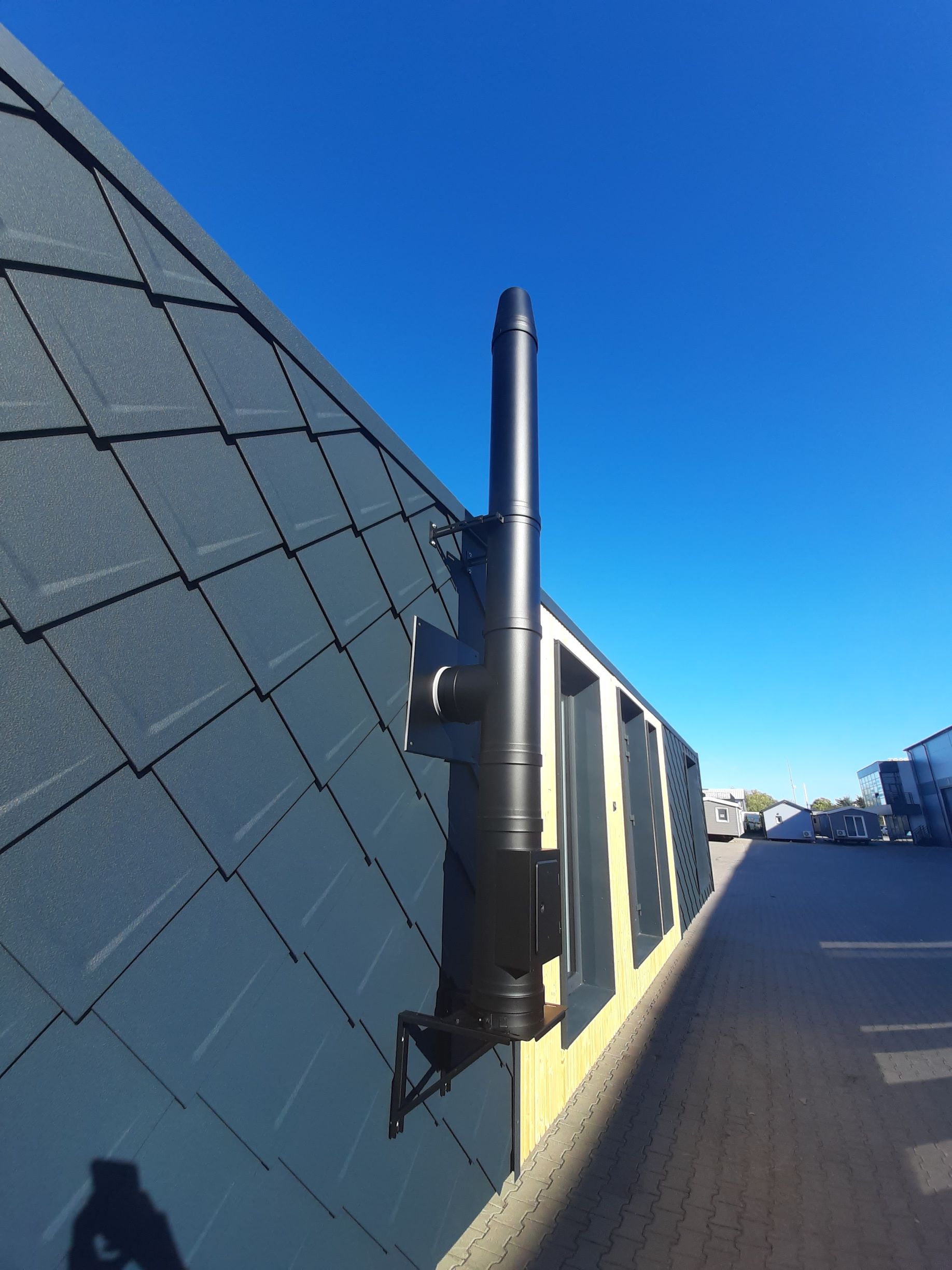 Wir haben zwei Fassadentypen kombiniert, um dem Haus ein zeitloses Erscheinungsbild zu verleihen. Die Fassade besteht aus wetterbeständigen Aluminium-Rauten und wird harmonisch mit der Dacheindeckung kombiniert, wodurch ein modernes Design entsteht.