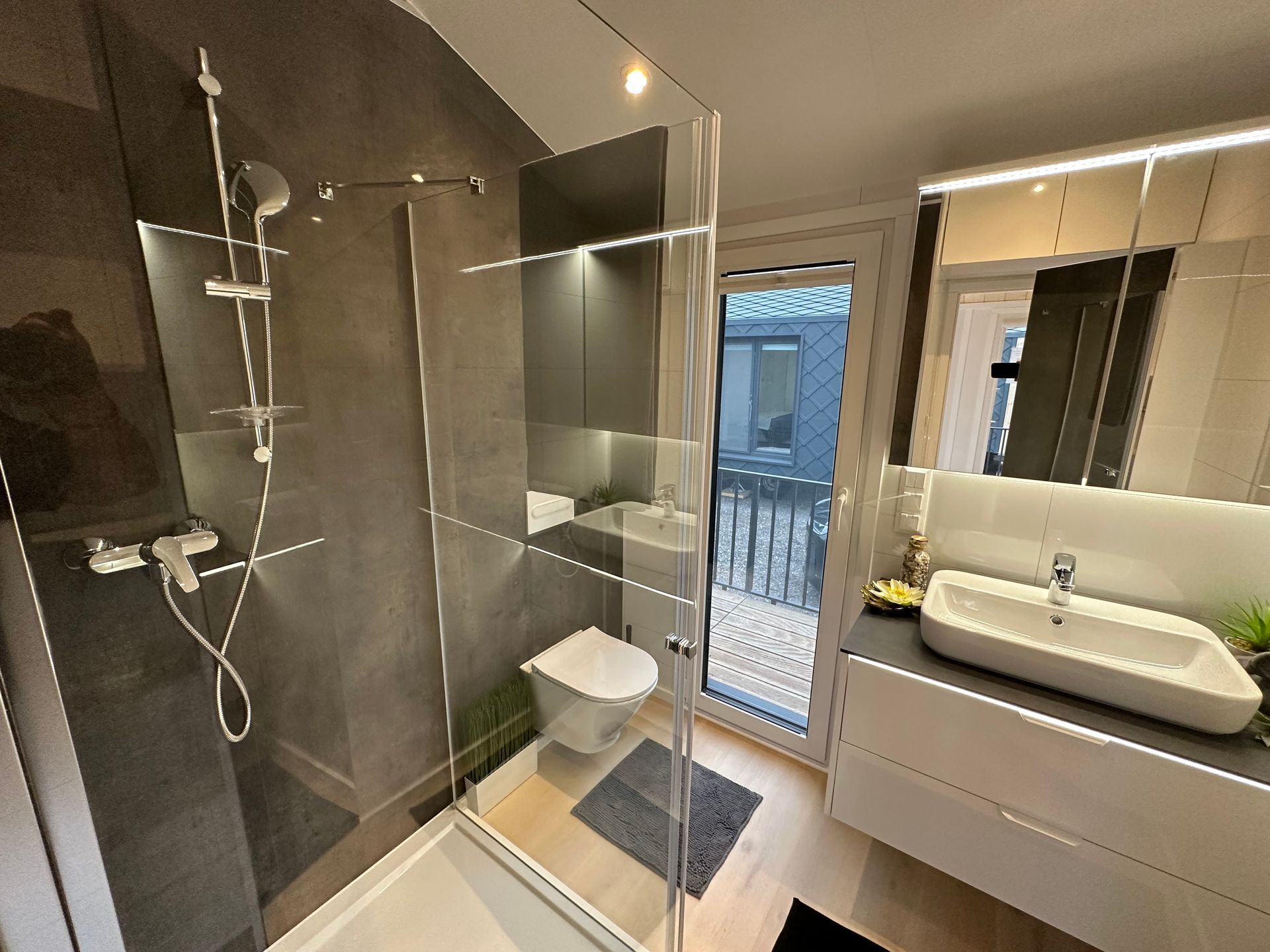 Die hochwertige 180 mm PUR-Schaumisolierung der Stahlkonstruktion und die Infrarot-Fußbodenheizung mit Wi-Fi-Steuerung gewährleisten eine konstante und optimale Temperatur in Ihrem Mobilheim – auch dann, wenn Sie gerade nicht vor Ort sind.